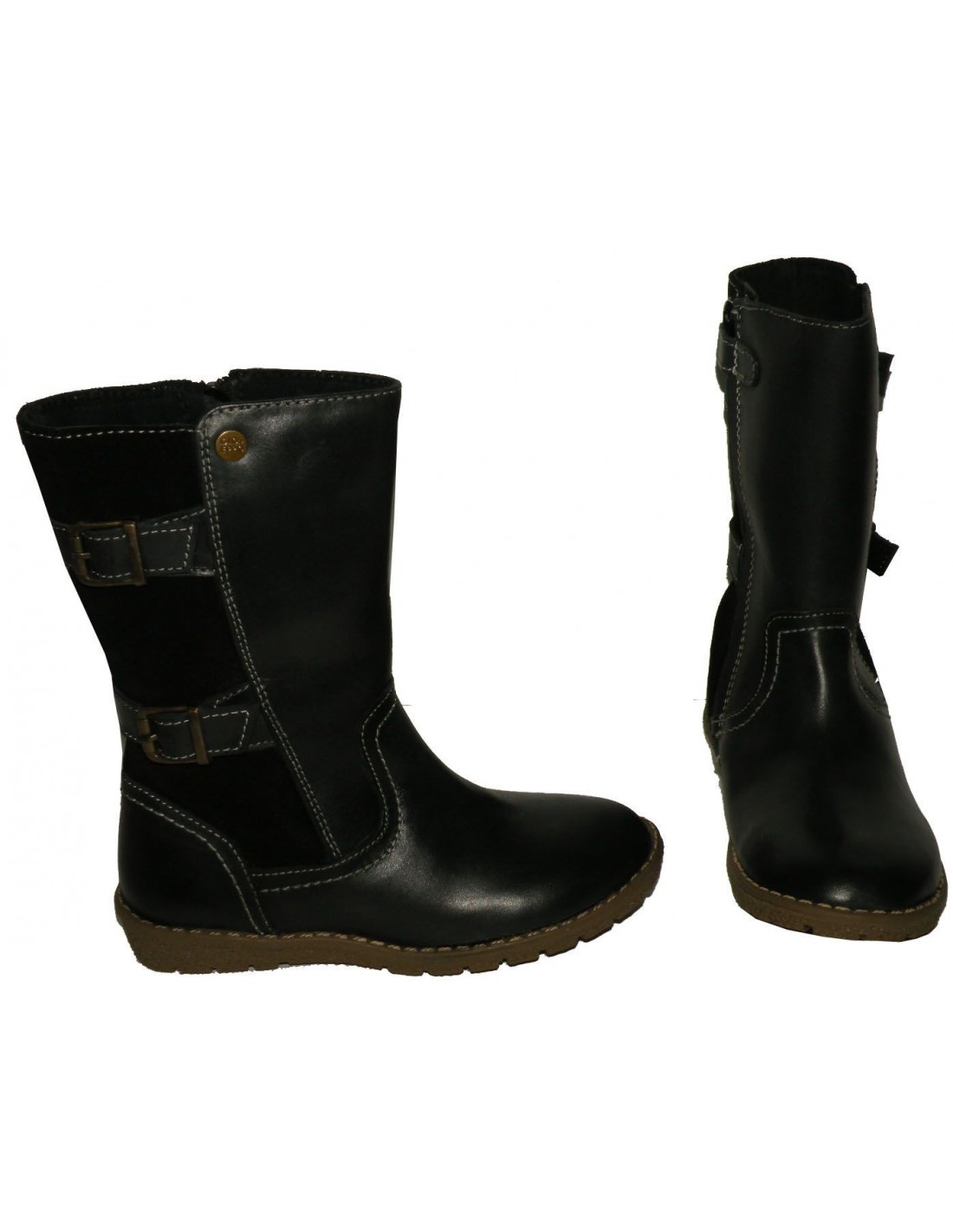 Bota de color negro de serraje/piel con cierre de cremallera lateral, forrada en su interior de material textil y con suela de goma antideslizante.