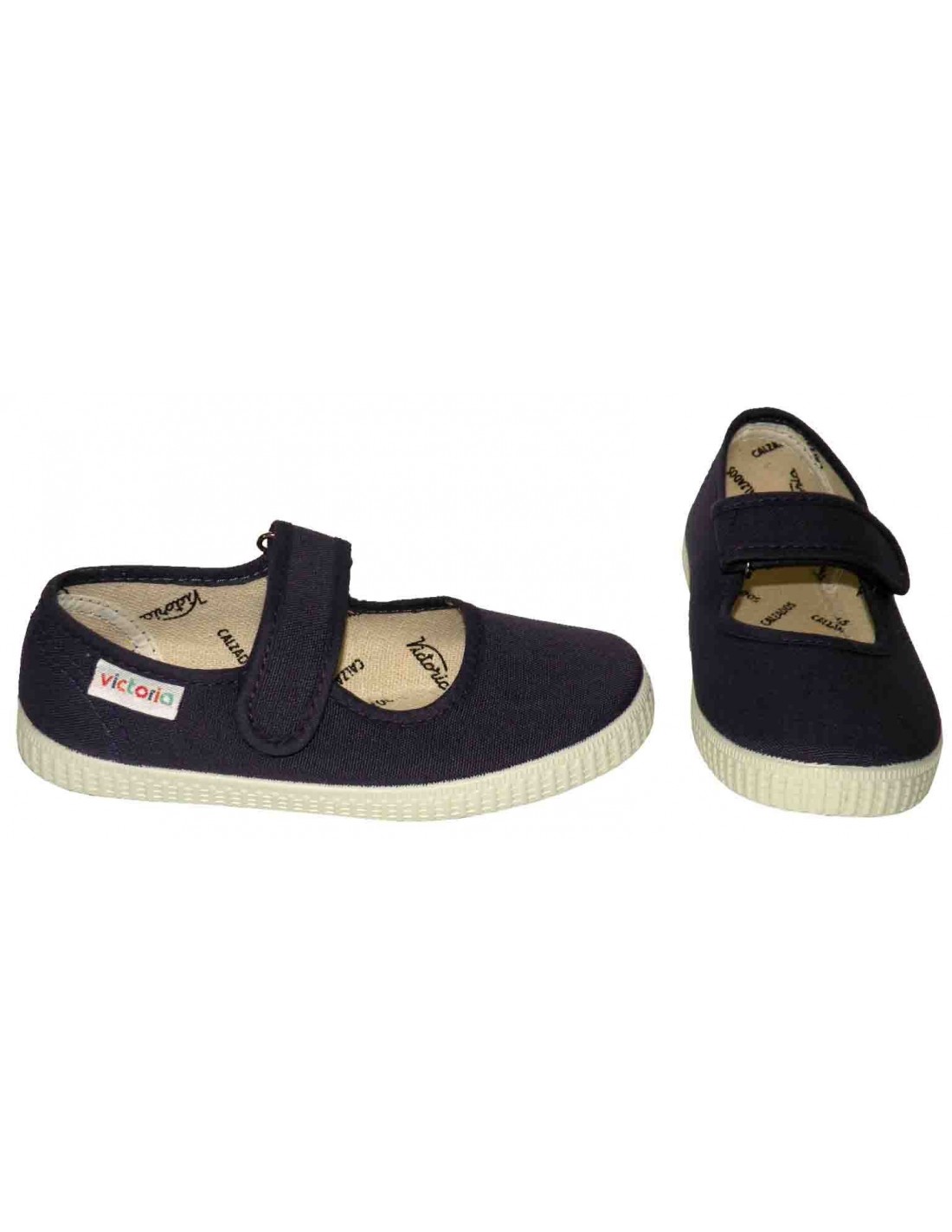 Merceditas de lona en color morado, cierre de velcro y piso de goma antideslizante.