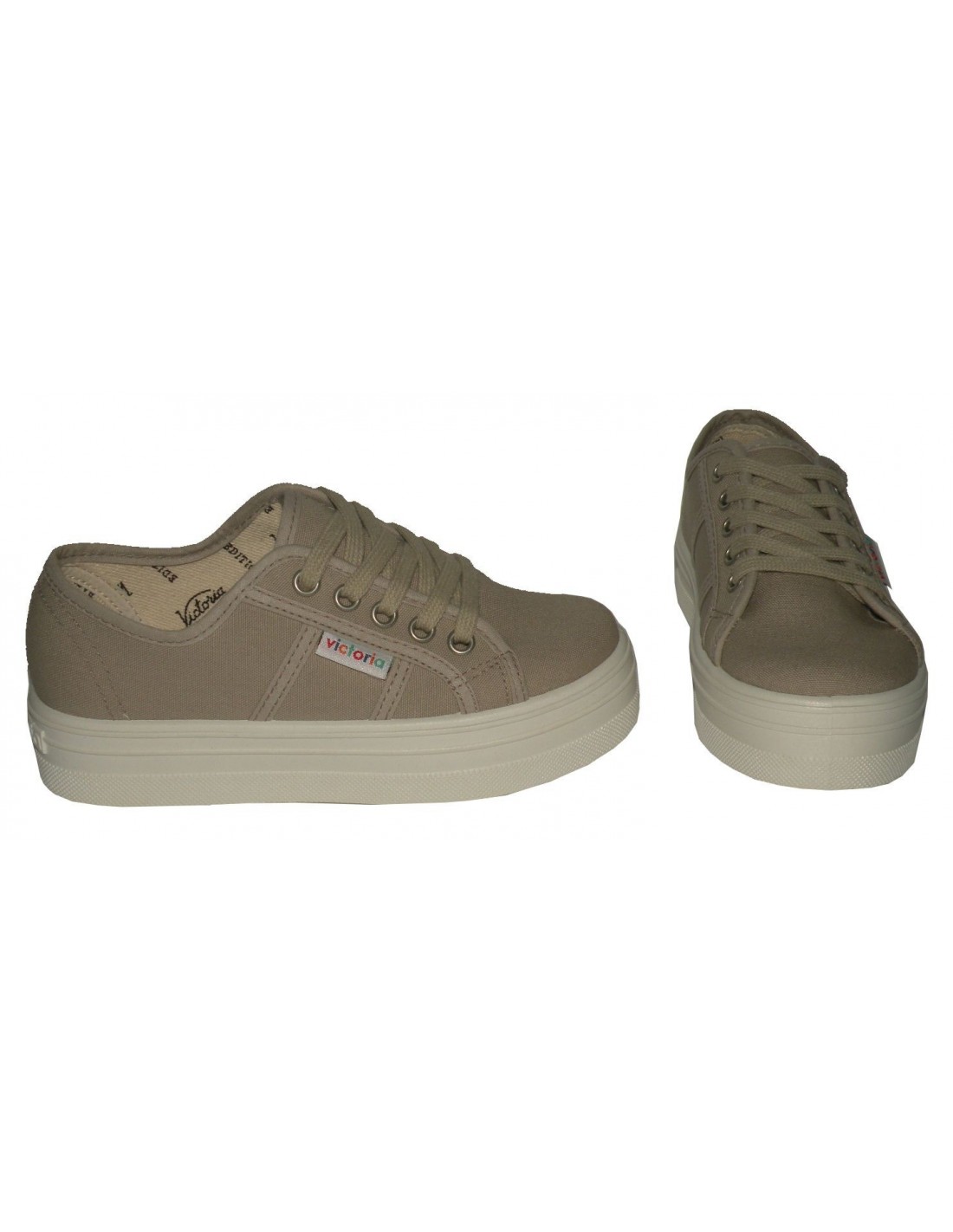 Zapatilla de lona en color beige, con cordón, plataforma de 3cm. aprox y piso de goma antideslizante. OJO CALZA JUSTO.