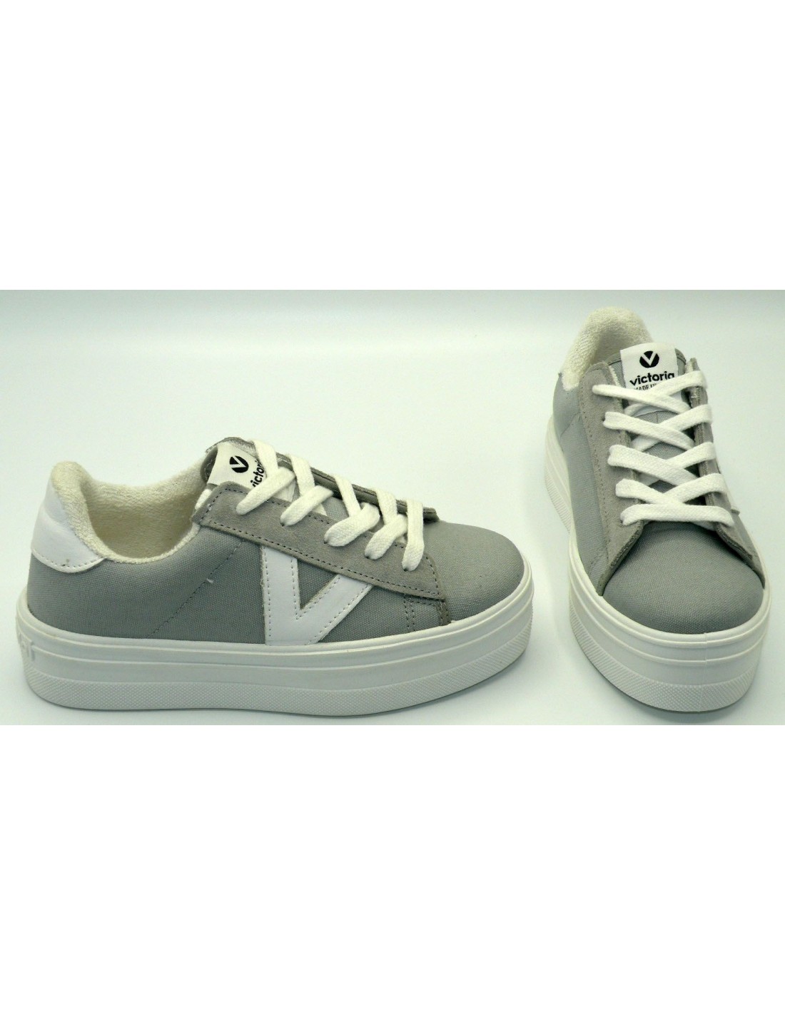 Zapatilla de lona en color gris, con cordones, plataforma de 3cm. y piso de goma antideslizante.
