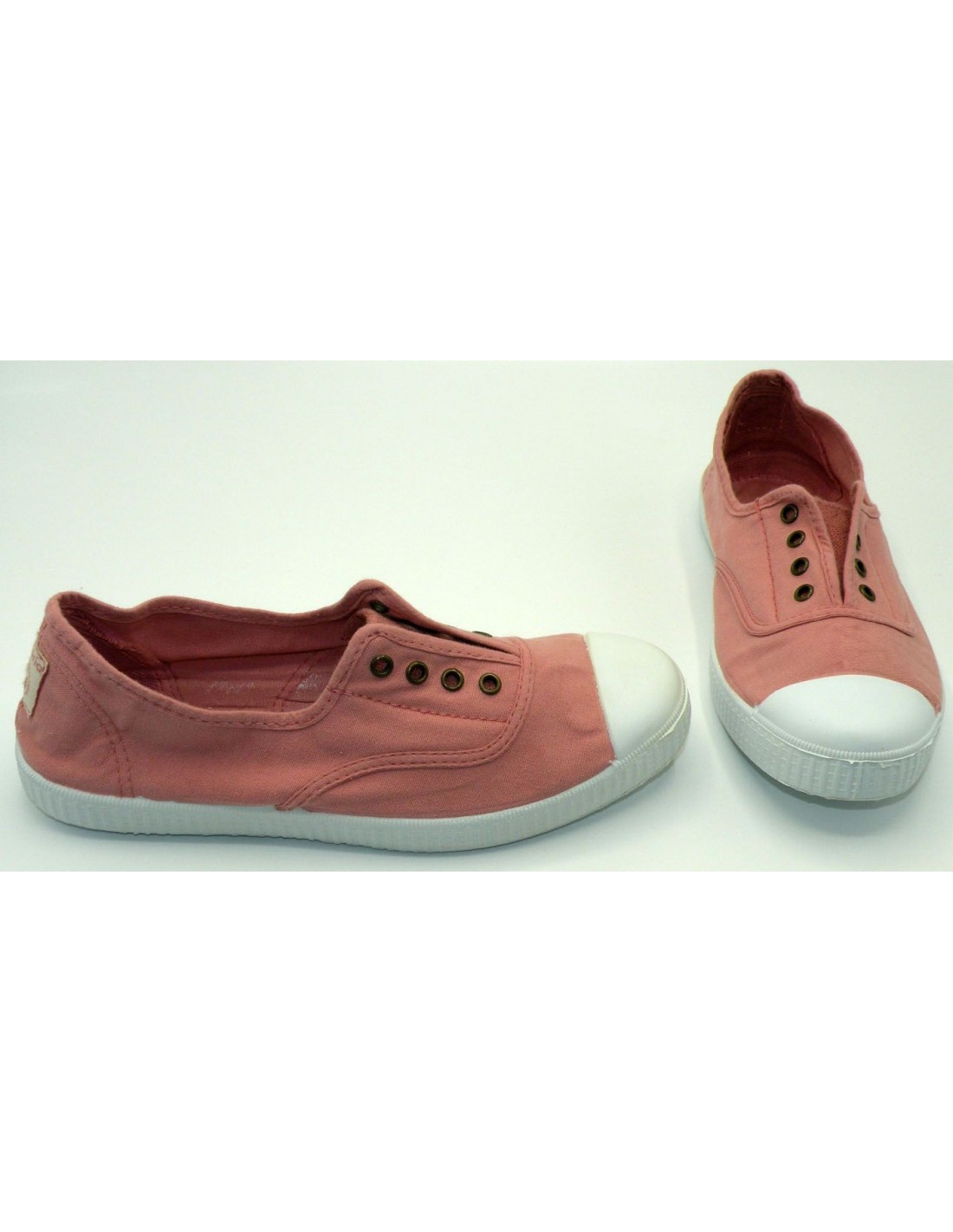 Zapatilla de lona en color nude, elástico en el empeine, puntera y piso de goma antideslizante.