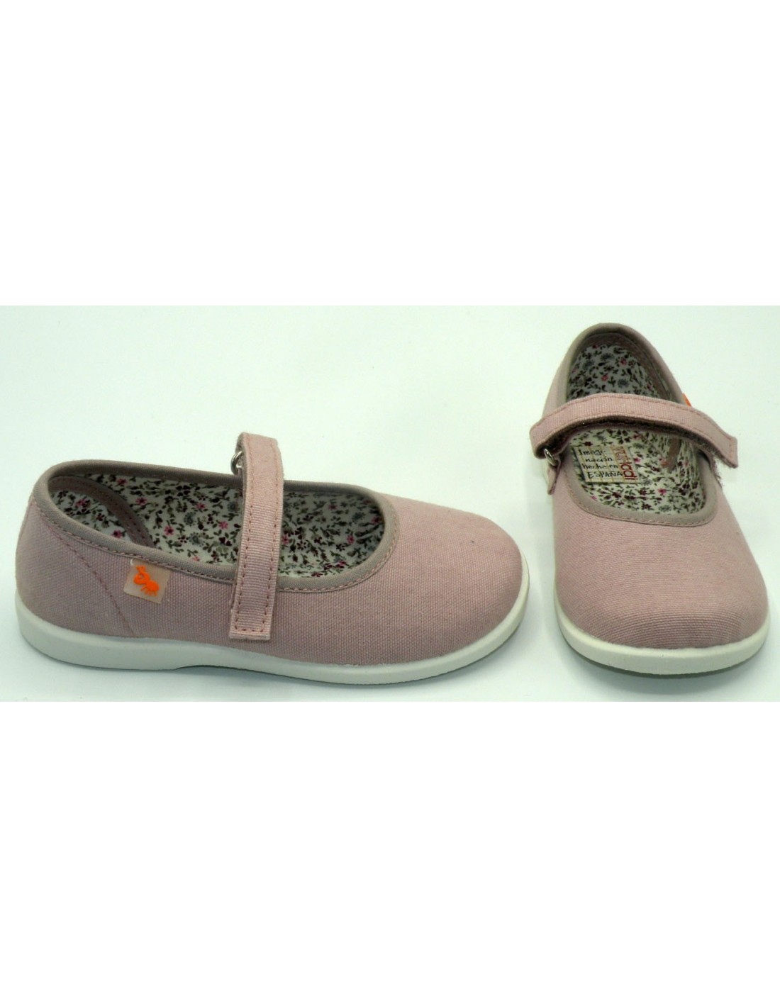 Merceditas de lona en color rosa palo, con velcro y piso de goma antideslizante.