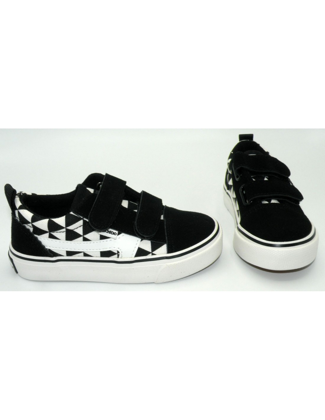 Deportiva de lona en color negro/blanco, con velcro y piso de goma antideslizante.