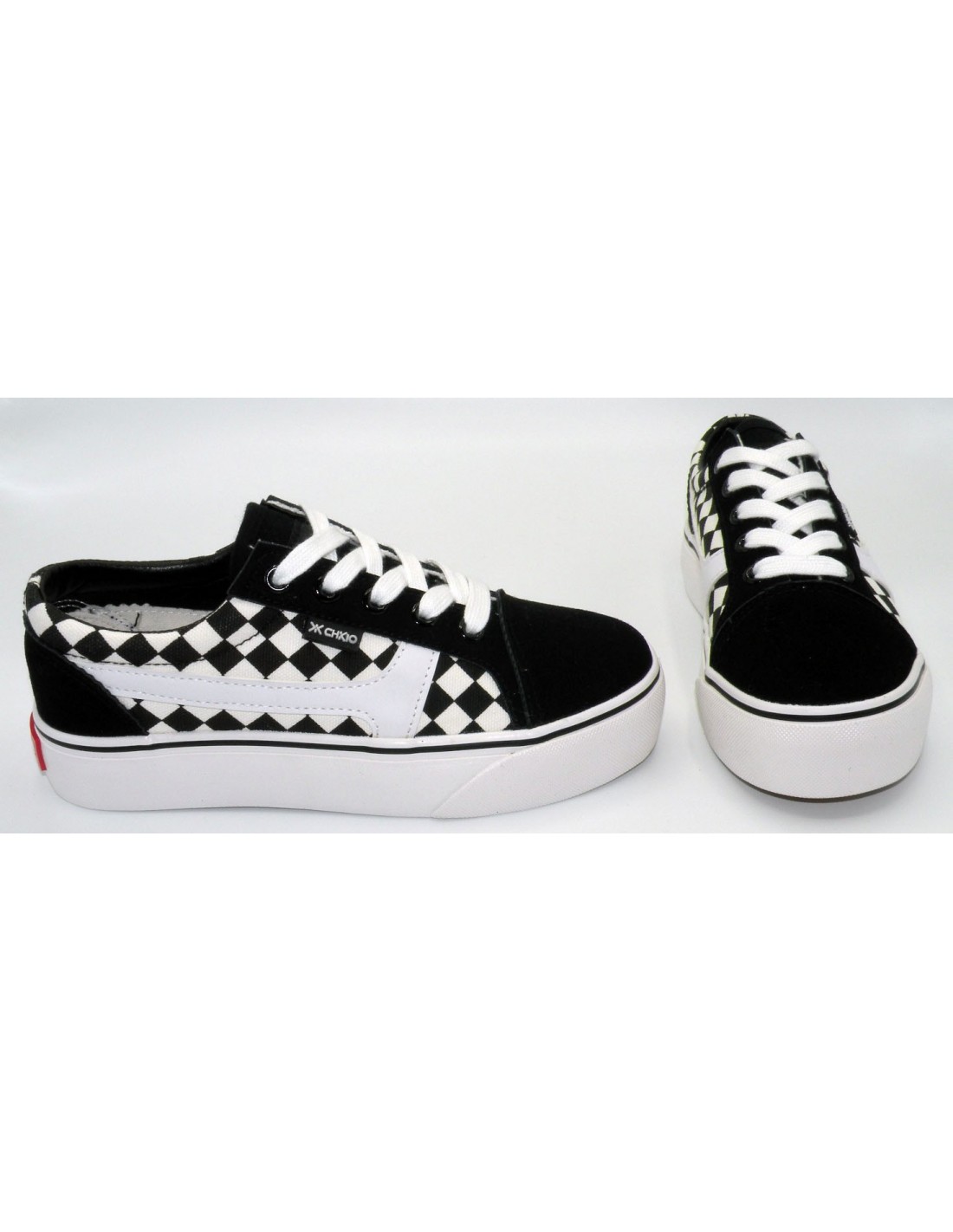 Deportiva en lona de color negro/blanco, con cordones y piso de goma antideslizante.
