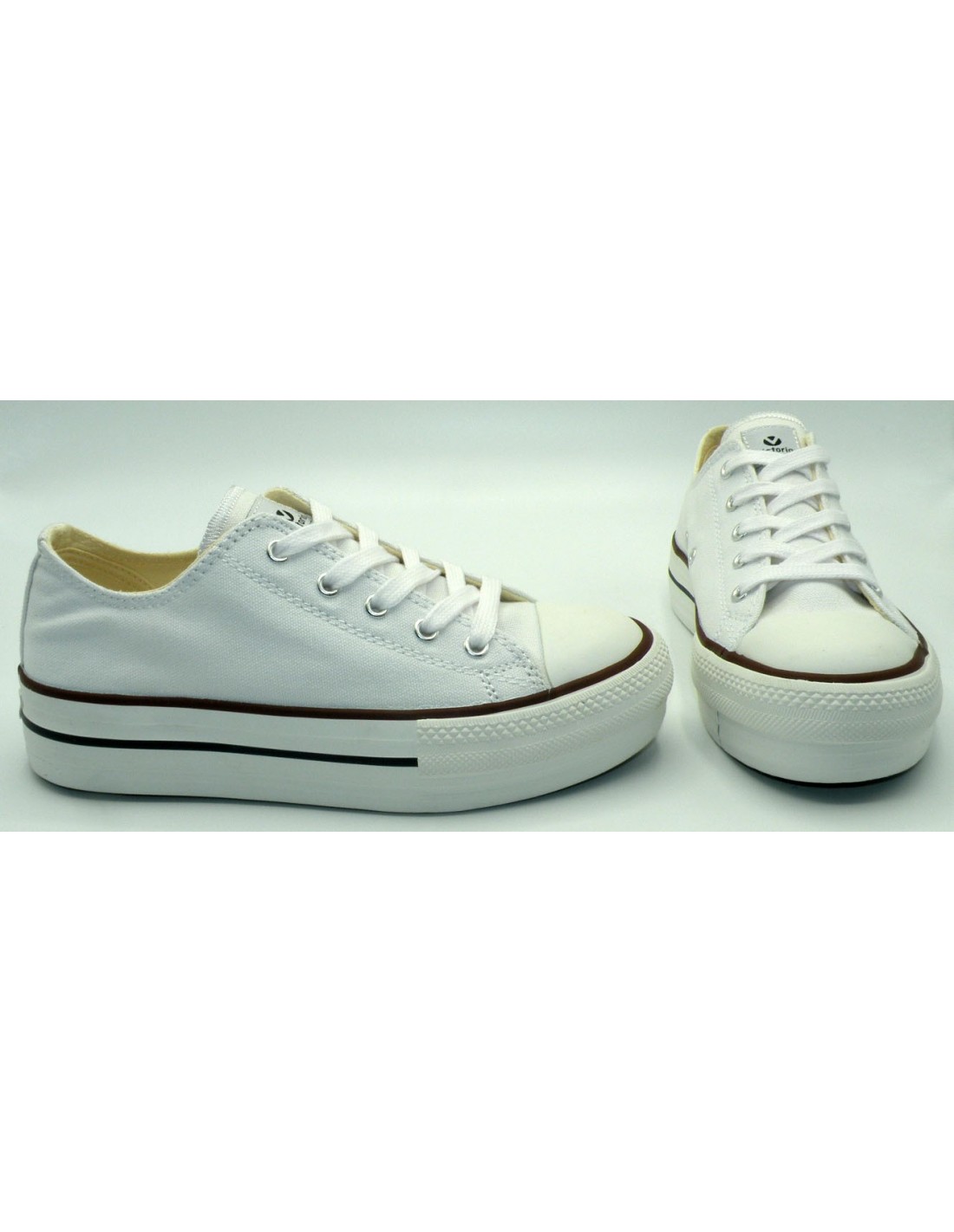 Zapatilla de lona en color blanco, con cordones, plataforma de 3cm y piso de goma antideslizante.