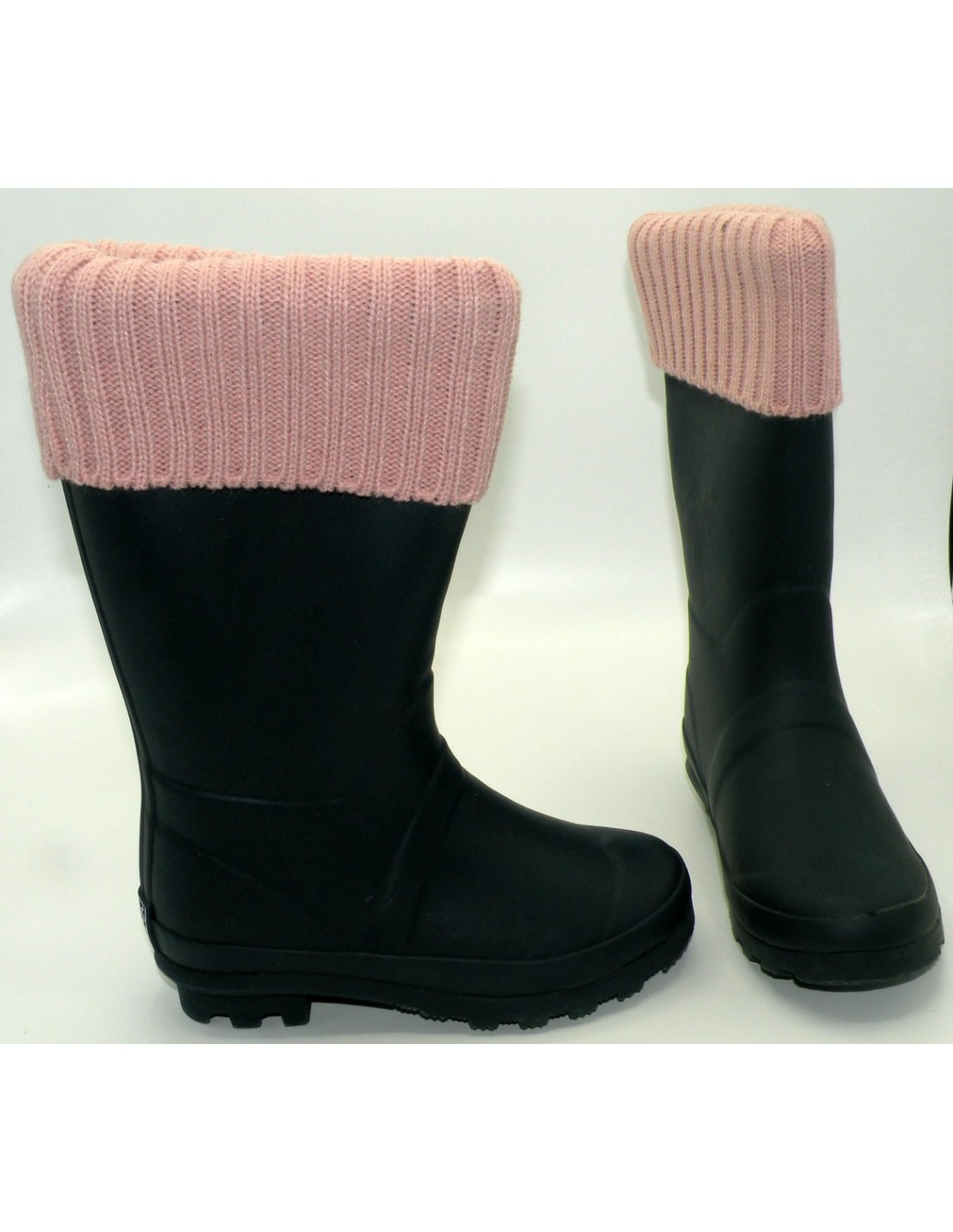 Botas de Agua de goma, de color Azul Marino/Rosa, con cuello de punto, plantilla interior y suela antideslizante.