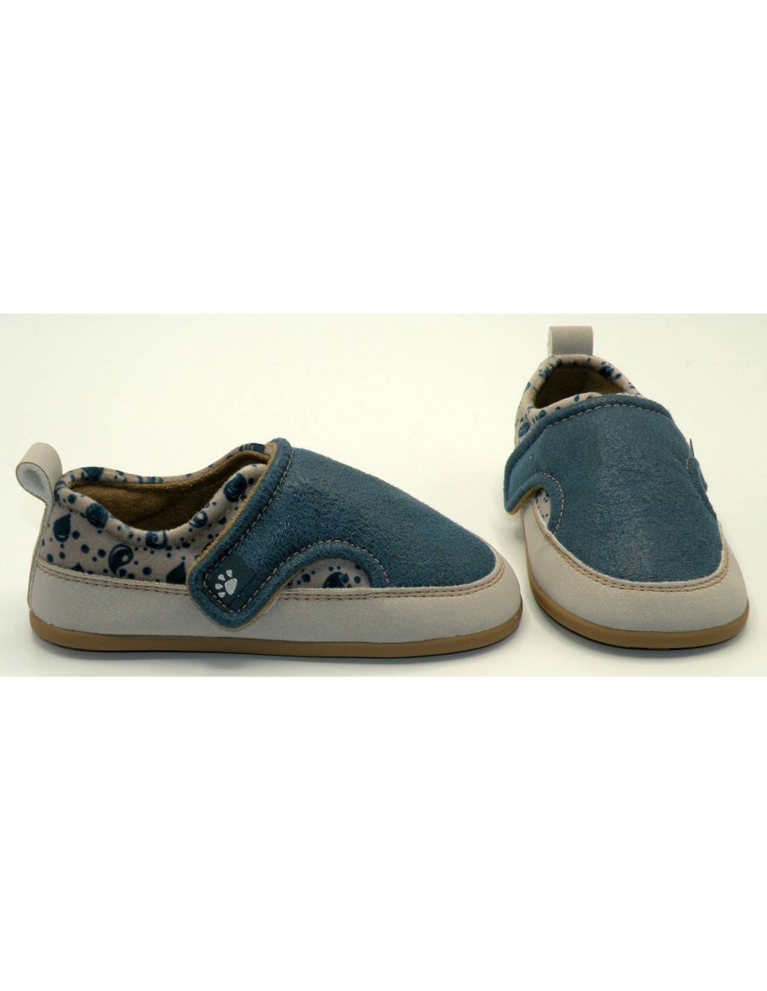 Zapato respetuoso vegano, en textil y microfibra, 2 velcros laterales, piso de 3,5mm.; horma recta y sin drop, plantilla extraíble.