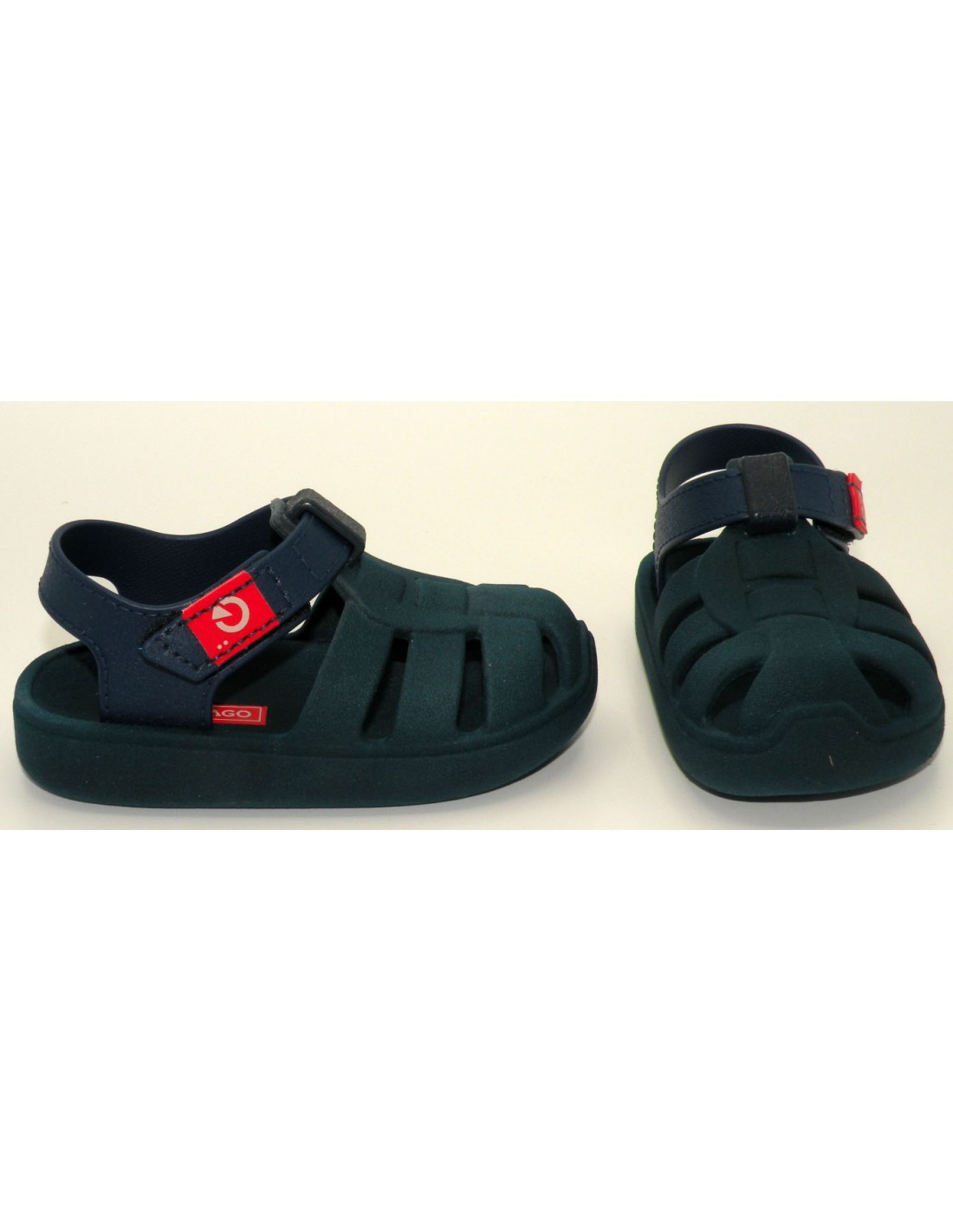 Zueco de piscina en sintético de color azul, pala rejada, velcro y piso flexible de goma antideslizante. SE PUEDE MOJAR.