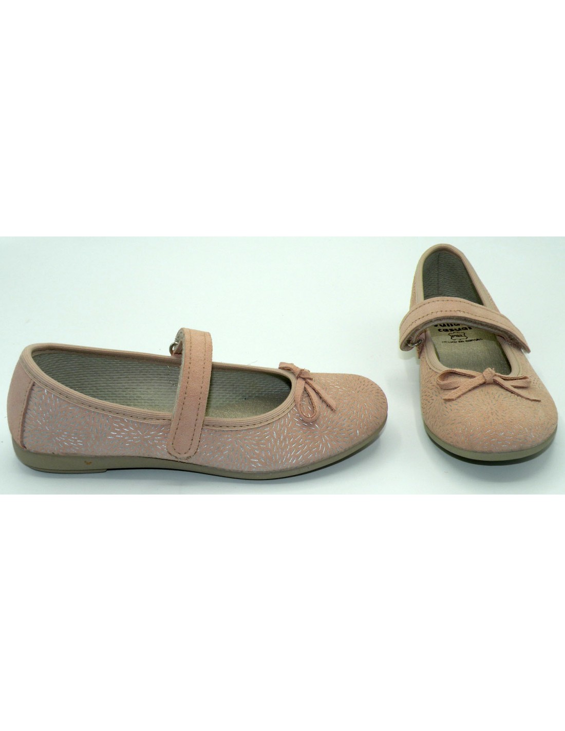 Manoletina en piel serraje de color nude, velcro y piso de goma antideslizante.