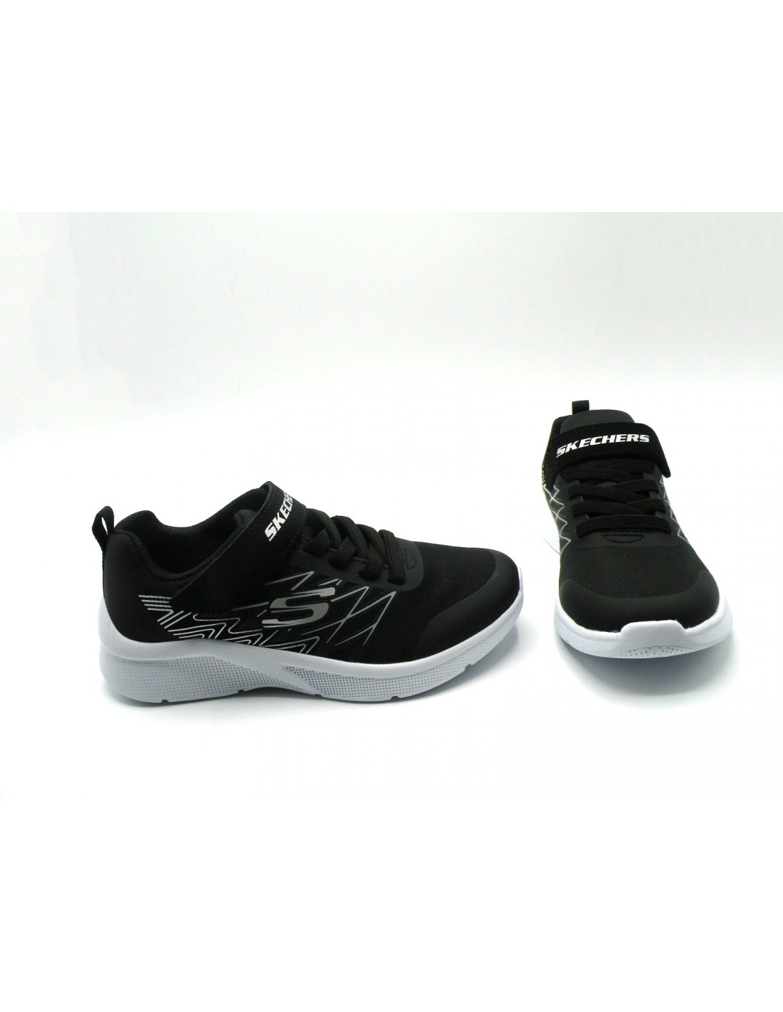 Deportiva en sintético de color negro/plata, cordón elástico y velcro, piso de goma antideslizante.