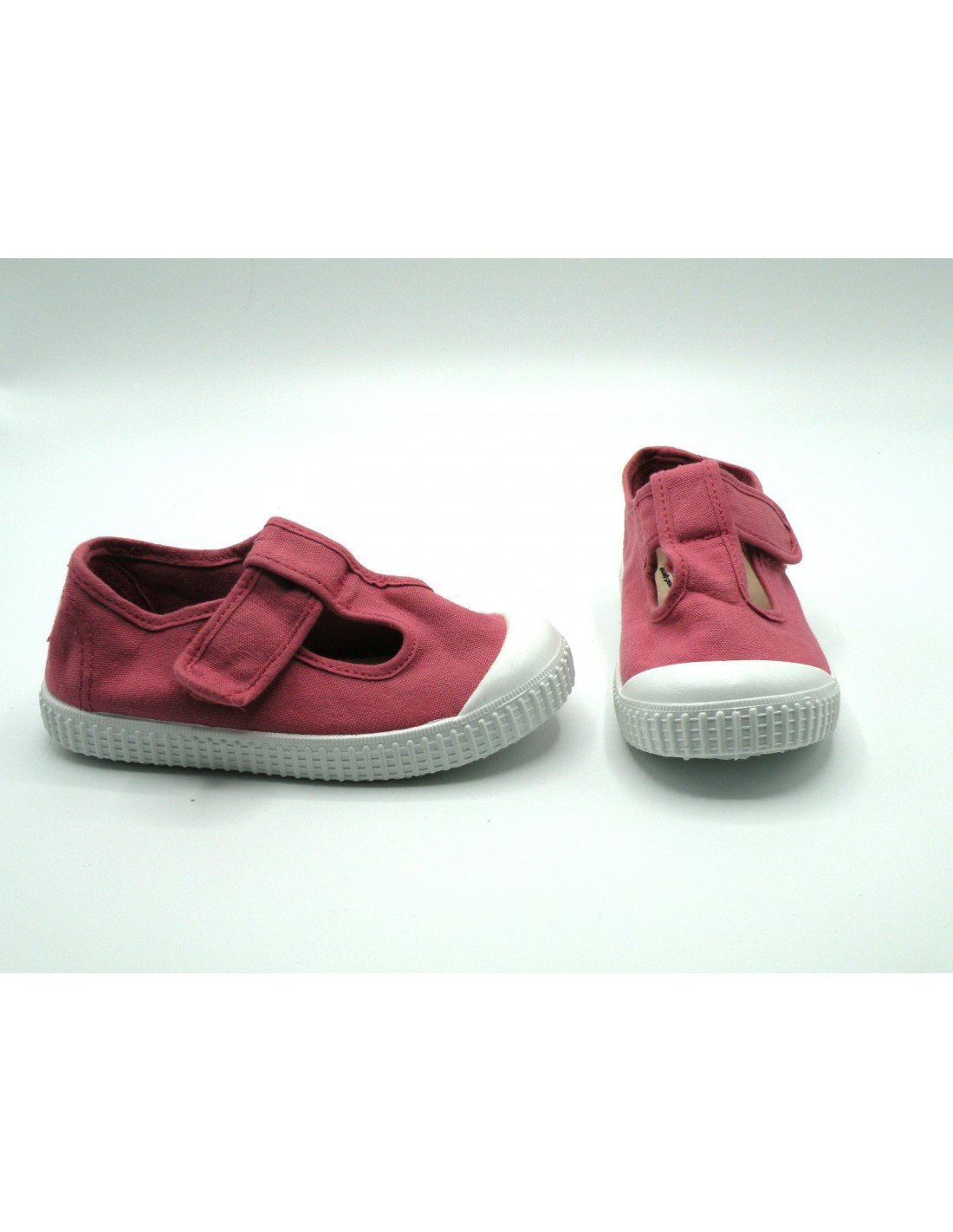Zapatilla de lona en color frambuesa, velcro y piso de goma antideslizante. OJO CALZA JUSTO.