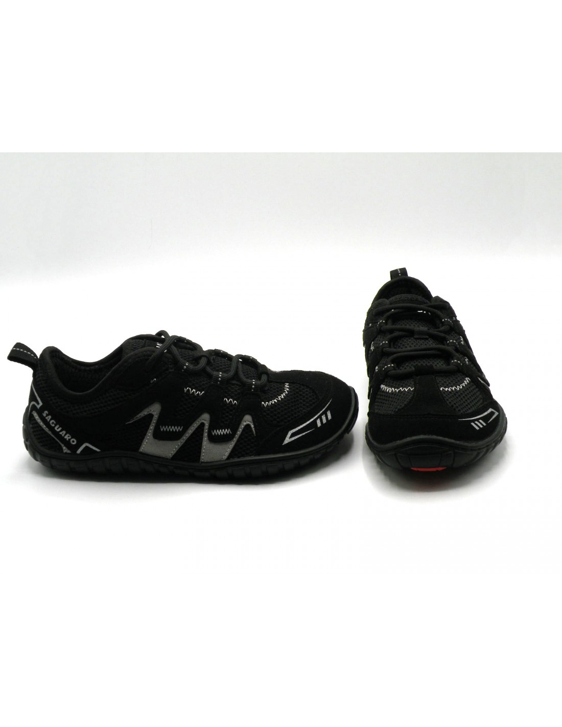 Deportiva barefoot en textil/sintético de color negro/gris, cordón y piso de goma antideslizante.